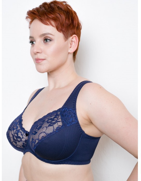 Бюстгальтер выполнен из трикотажного полотна, на каркасе, чашка полупоролон, верх чашки отделан эластичным кружевом. Дополнительная боковая прошивка на чашке обеспечивает превосходный корректирующий эффект. Широкая бретель продублирована мягким хлопком для дополнительного комфорта. Модель отлично корректирует и поддерживает грудь.