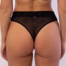 Трусы средней посадки, модель "бразилиана". Все детали из эластичной сетки. На переднюю деталь настрочены две узкие кружевные детали.